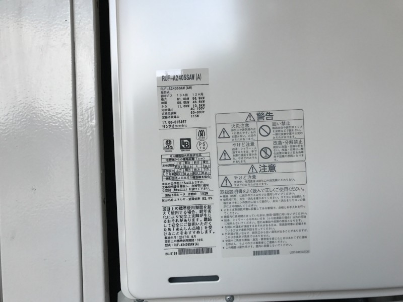 鶴見区上の宮 RUFH-V2400SAA2-3の給湯器交換